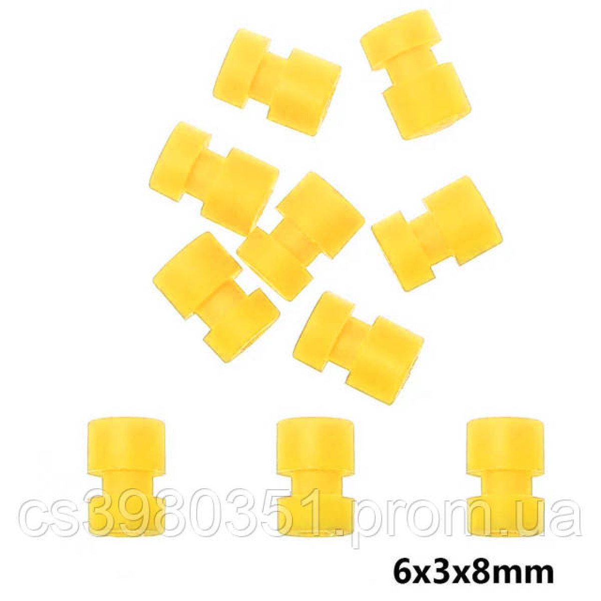 Набір гумових демпферів М3. Технічні характеристики: Внутрішній діаметр отвору: 3мм; Висота: 8мм; Зовнішній діаметр: 6мм; Матеріал: еластична гума; Колір жовтий. Комплектація: Демпфер для решулятора ESC М3*10шт.
