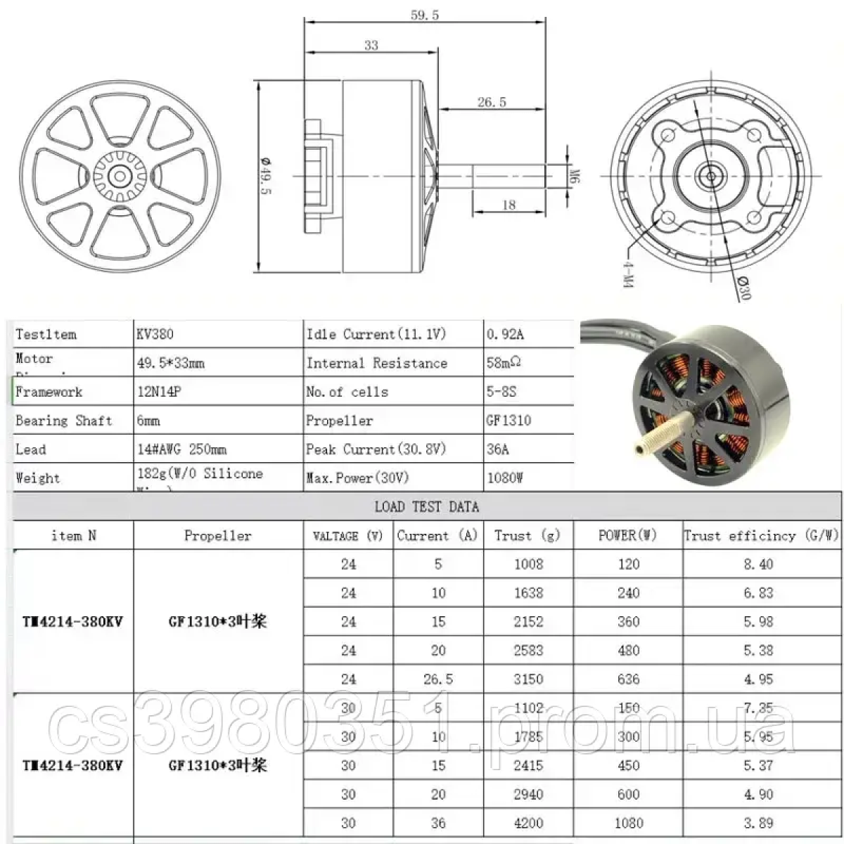 Мотор SPARKHOBBY X4214 4214 380KV 6-8S Lipo for 13inch X-CLASS FPV (комплект 4шт)
