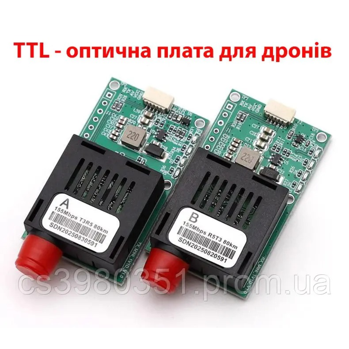 Передавач FPV TX 155M-FC-3.3V 25км є оптоволоконним пристроєм для передачі відеосигналу та керування з дронів і безпілотних літальних апаратів (БПЛА). Модель оснащена лазером 155М 1310нм та забезпечує дальність передачі сигналу до 25 км.