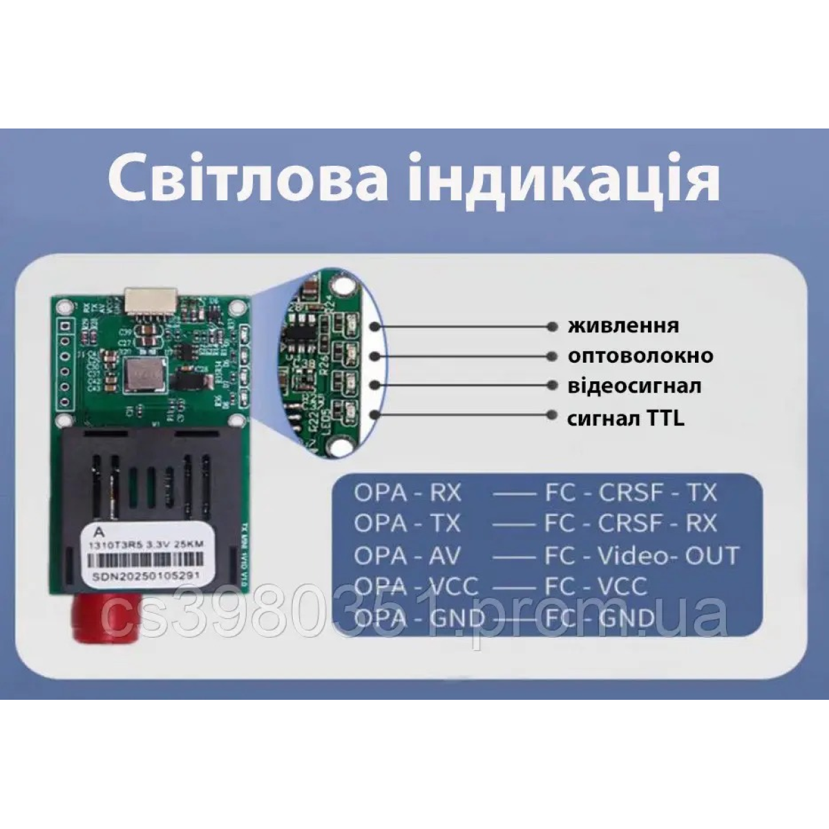 Приймач FPV RX 155M-FC-3.3V 25км є оптоволоконним пристроєм для передачі відеосигналу та керування з дронів і безпілотних літальних апаратів (БПЛА). Модель оснащена лазером 155М 1550нм та забезпечує дальність передачі сигналу до 25 км.